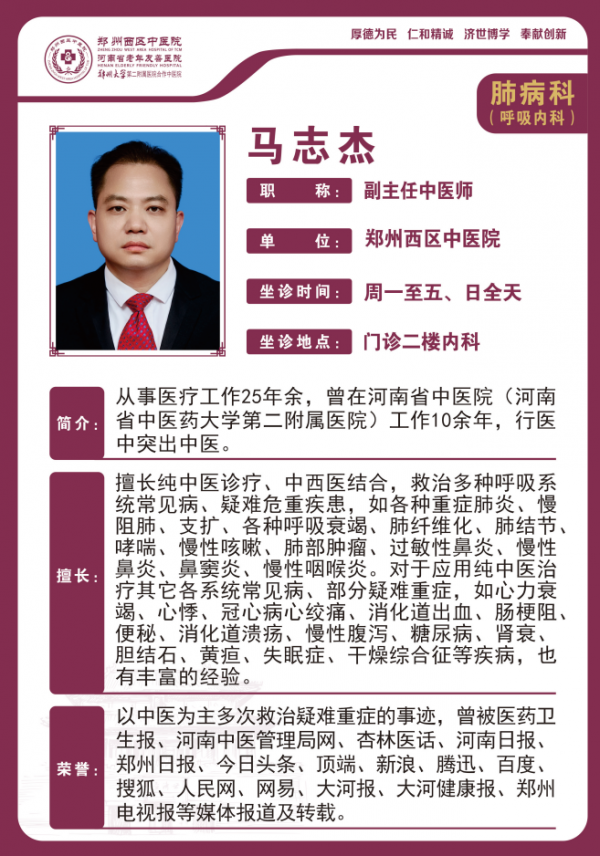 从事医疗工作25年余,曾在河南省中医院(河南省中医药大学第二附属医院)工作10余年,行医中突出中医。