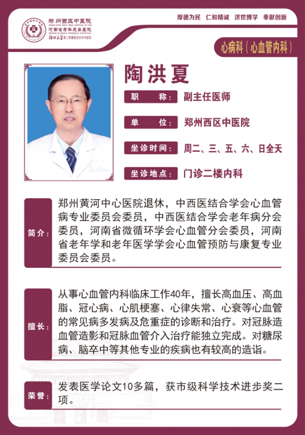 从事心血管内科临床工作40年,擅长高血压、高血脂、冠心病、心肌梗塞、心律失常、心衰等心血管的常见病多发病及危重症的诊断和治疗。对冠脉造血管造影和冠脉血管介入治疗能独立完成。对糖尿病、脑卒中等其他专业的疾病也有较高的造诣。
