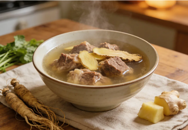 饮食上,宜选择温热食物:羊肉、鸡肉、核桃、板栗等皆可补益身体。推荐当归生姜羊肉汤——取羊肉250克、当归15克、生姜30克,炖煮1-2小时,有温中补虚之效。
