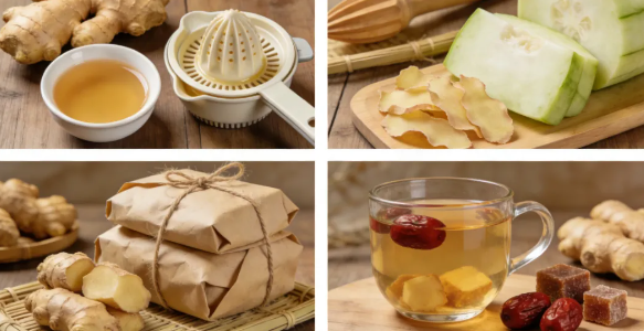 生姜皮:利水消肿。姜皮性凉,配冬瓜皮煮水,适合小便不畅、轻度水肿,不伤阴。