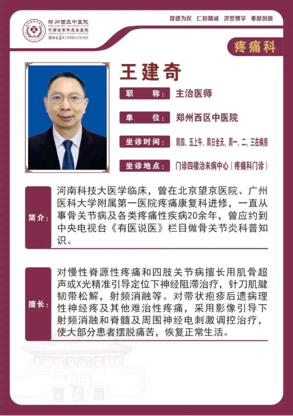 (郑州西区中医院疼痛科 王建奇主任讲解患者带状疱疹情况)