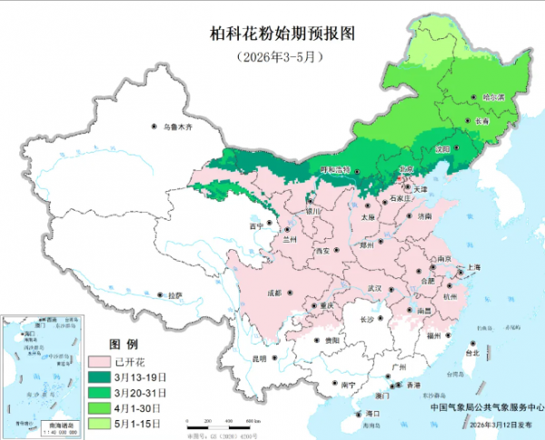 根据中国天气网发布的全国春季花粉预报地图,河南已经进入花粉过敏季节。来自中国气象局公共气象服务中心的信息显示,目前郑州已经进入垂柳花粉期和柏科花粉期,对这些树种过敏的人群要注意防护。