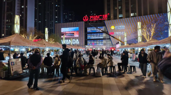 4月4日晚,郑州高新区万达广场外灯火通明,暖意融融。