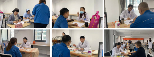 上午九点半,活动在华晶公司(简称)309、310会议室正式开始。我院护士首先引导参与人员完成签到,逐一测量身高、体重、体脂等基础指标,建立“一人一档”个性化健康档案。随后,中医专家通过望闻问切,西医专家结合建档信息,为每位管理人员细致分析身体状况,指出潜在健康风险,并给出针对性养生建议及就医指导。|